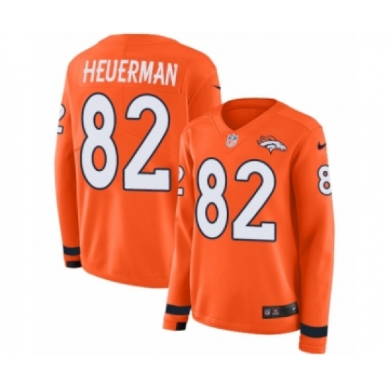 >Women's Nike Denver Broncos #82 Jeff Heuerman Limited Orange Therma Long Sleeve NFL Jersey
