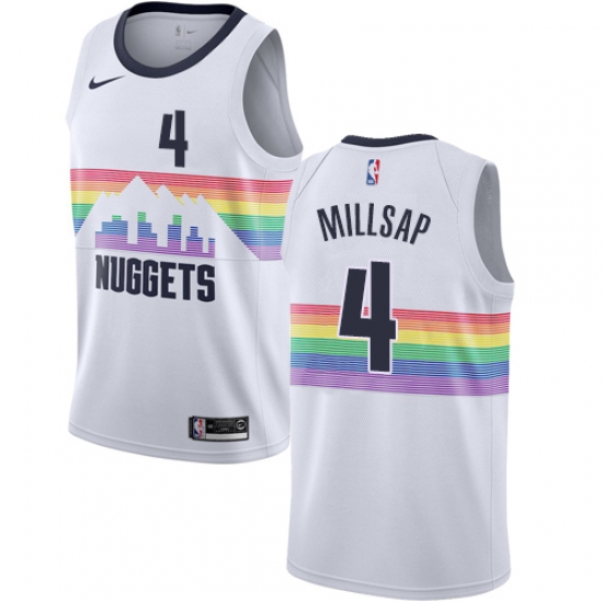 >Women's Nike Denver Nuggets #4 Paul Millsap Swingman White NBA Jersey - City Edition