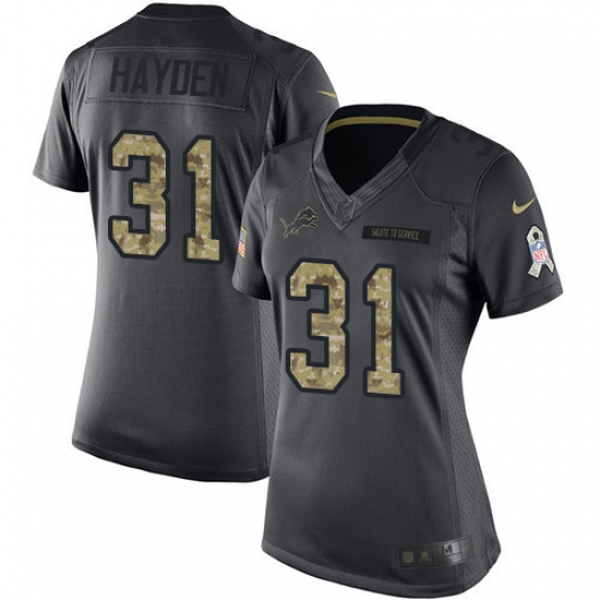 Home>NFL>Detroit Lions>D.J. Hayden>Women's Nike Detroit Lions #31 D.J. Hayden Limited Black 2016 Salute to Service NFL Jersey