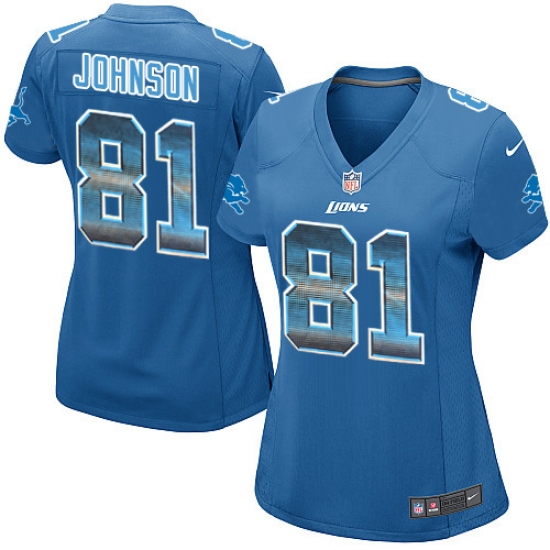 Women's Nike Detroit Lions #81 Calvin Johnson Limited Blue Strobe NFL Jersey