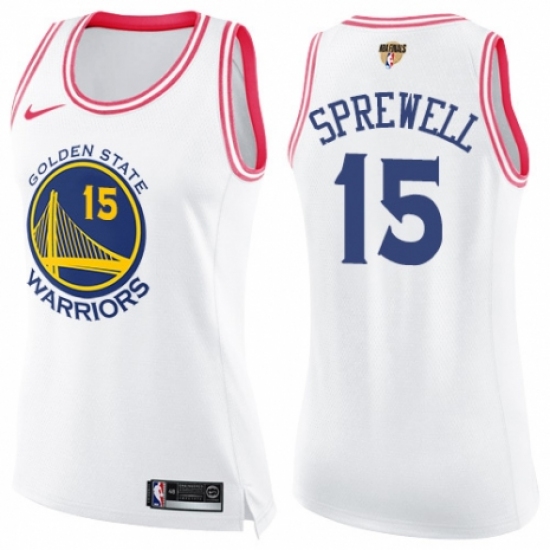 >Women's Nike Golden State Warriors #15 Latrell Sprewell Swingman White/Pink Fashion 2018 NBA Finals Bound NBA Jersey