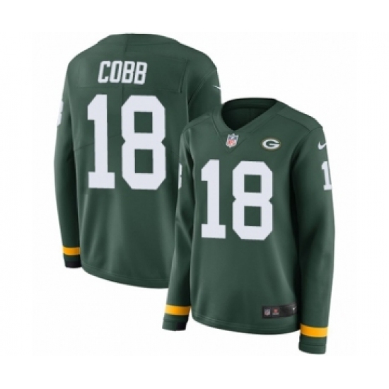 Women's Nike Green Bay Packers #18 Randall Cobb Limited Green Therma Long Sleeve NFL Jersey
