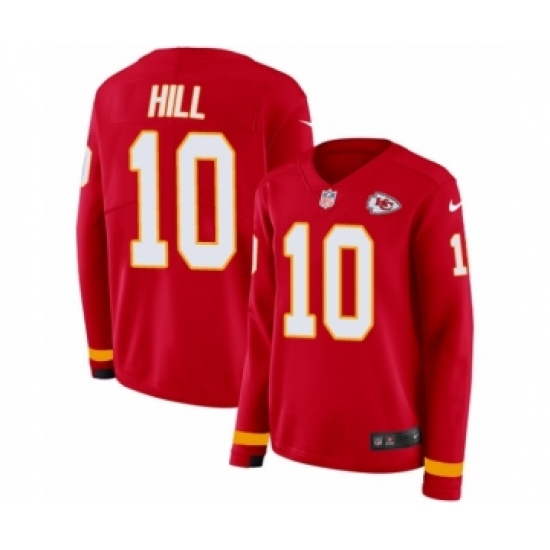 >Women's Nike Kansas City Chiefs #10 Tyreek Hill Limited Red Therma Long Sleeve NFL Jersey