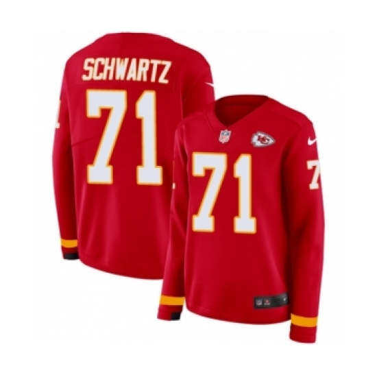>Women's Nike Kansas City Chiefs #71 Mitchell Schwartz Limited Red Therma Long Sleeve NFL Jersey