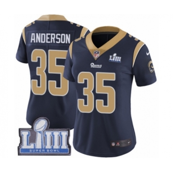 >Women's Nike Los Angeles Rams #35 C.J. Anderson Navy Blue Team Color Vapor Untouchable Limited Player Super Bowl LIII Bound NFL Jersey