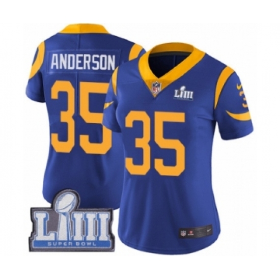 >Women's Nike Los Angeles Rams #35 C.J. Anderson White Vapor Untouchable Limited Player Super Bowl LIII Bound NFL Jersey