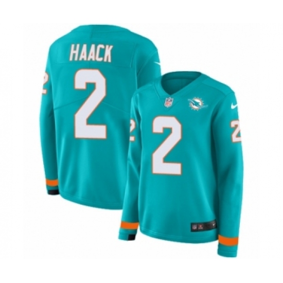 >Women's Nike Miami Dolphins #13 Dan Marino Limited Aqua Therma Long Sleeve NFL Jersey