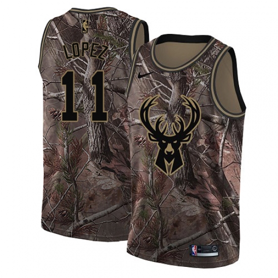 >Women's Nike Milwaukee Bucks #11 Brook Lopez Swingman Camo Realtree Collection NBA Jersey