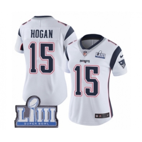 Women's Nike New England Patriots #15 Chris Hogan White Vapor Untouchable Limited Player Super Bowl LIII Bound NFL Jersey