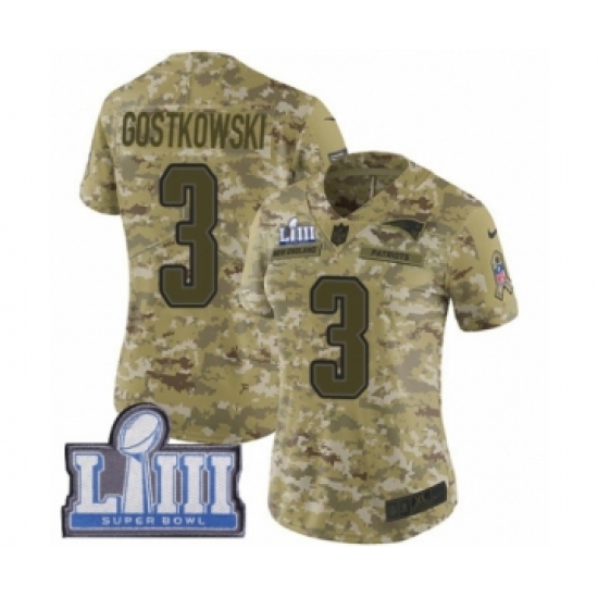 >Women's Nike New England Patriots #3 Stephen Gostkowski Limited Camo 2018 Salute to Service Super Bowl LIII Bound NFL Jersey