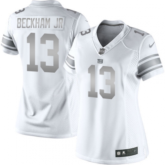 Women's Nike New York Giants #13 Odell Beckham Jr Limited White Platinum NFL Jersey