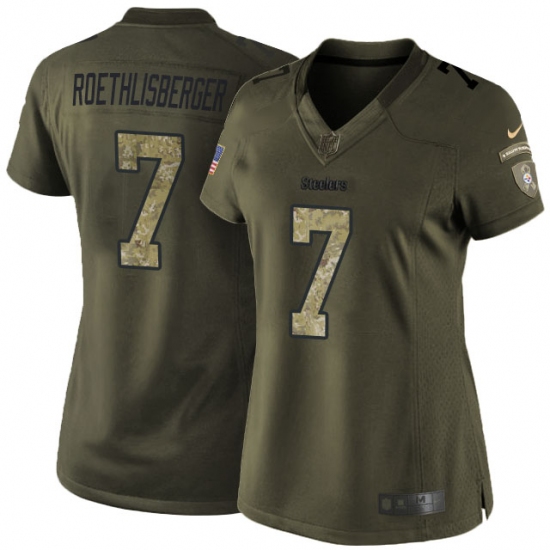 Home>NFL>Pittsburgh Steelers>Ben Roethlisberger>Women's Nike Pittsburgh Steelers #7 Ben Roethlisberger Elite Green Salute to Service NFL Jersey