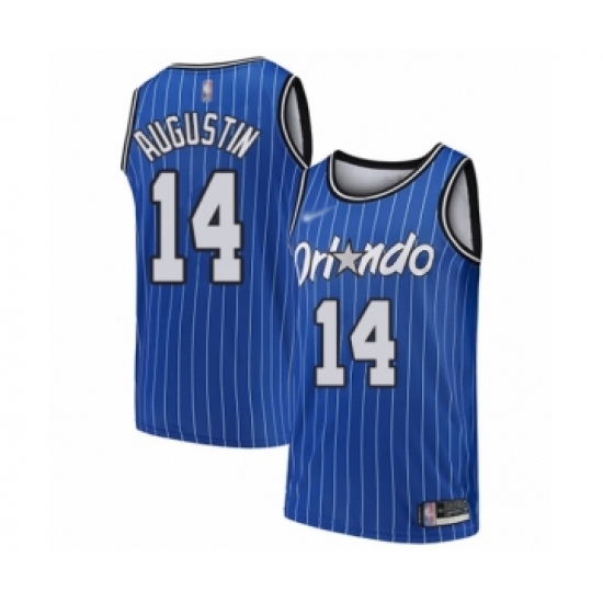 Men's Orlando Magic #14 D.J. Augustin Authentic Blue Hardwood Classics Basketball Jersey