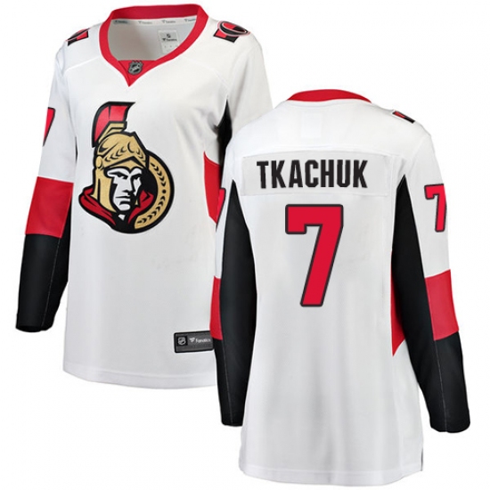 >Women's Ottawa Senators #7 Brady Tkachuk Fanatics Branded White Away Breakaway NHL Jersey