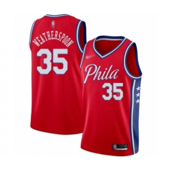 Men's Philadelphia 76ers #35 Clarence Weatherspoon Authentic Red Finished Basketball Jersey - Statement Edition