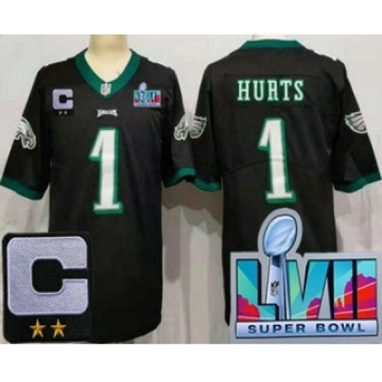 Men's Philadelphia Eagles #1 Jalen Hurts Limited Black C Patch Super Bowl LVII Vapor Jersey