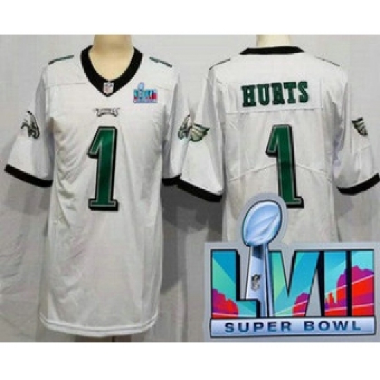 Women's Philadelphia Eagles #1 Jalen Hurts Limited White Super Bowl LVII Vapor Jersey
