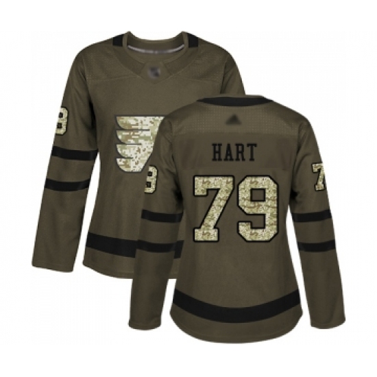 Women's Philadelphia Flyers #79 Carter Hart Authentic Green Salute to Service Hockey Jersey