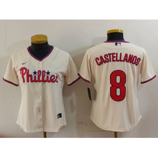 >Women's Philadelphia Phillies #8 Nick Castellanos Cream Cool Base Jersey