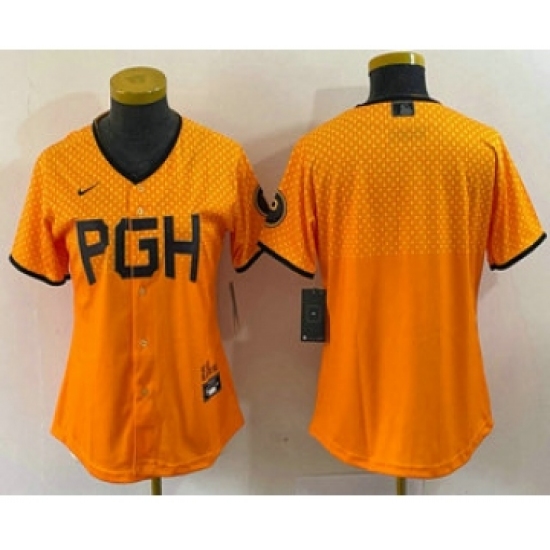 Women's Pittsburgh Pirates Blank Clemente Yellow 2023 City Connect Stitched Jersey1