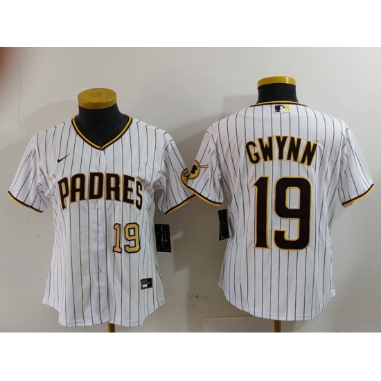 Women's San Diego Padres #19 Tony Gwynn White Team Logo Stitched Cool Base Nike Jerseys