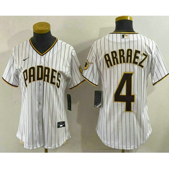 >Women's San Diego Padres #4 Luis Arraez White Cool Base Stitched Jersey