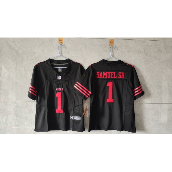 >Women's San Francisco 49ers #1 Deebo Samuel Sr. Black F.U.S.E Vapor Untouchable Stitched Jersey(Run Small)