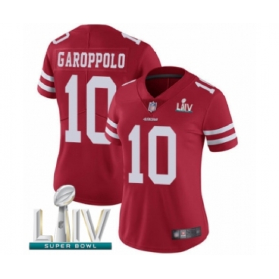 Women's San Francisco 49ers #10 Jimmy Garoppolo Red Team Color Vapor Untouchable Limited Player Super Bowl LIV Bound Football Jersey