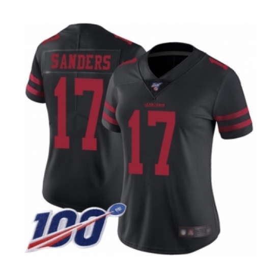 >Women's San Francisco 49ers #17 Emmanuel Sanders Black Vapor Untouchable Limited Player 100th Season Football Jersey