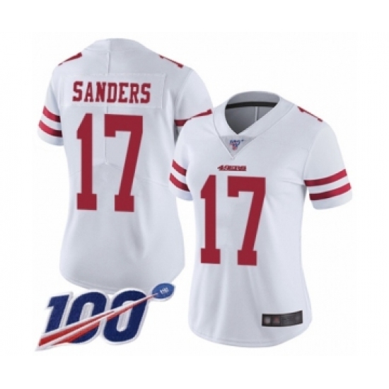 >Women's San Francisco 49ers #17 Emmanuel Sanders White Vapor Untouchable Limited Player 100th Season Football Jersey