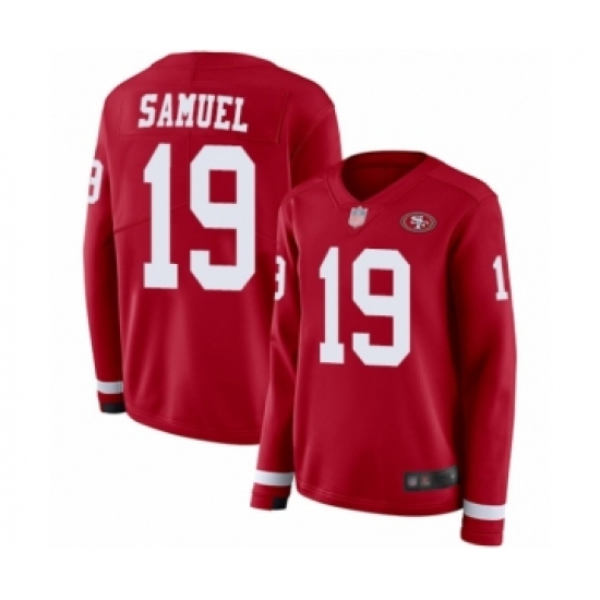 >Women's San Francisco 49ers #19 Deebo Samuel Limited Red Therma Long Sleeve Football Jersey