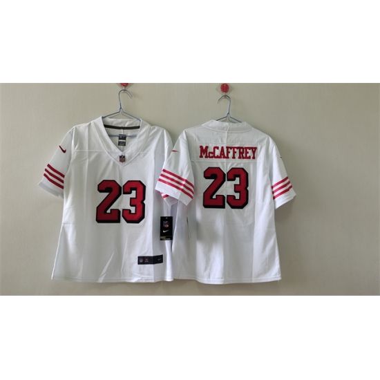 Women's San Francisco 49ers #23 Christian McCaffrey White Football Stitched Jersey(Run Small)