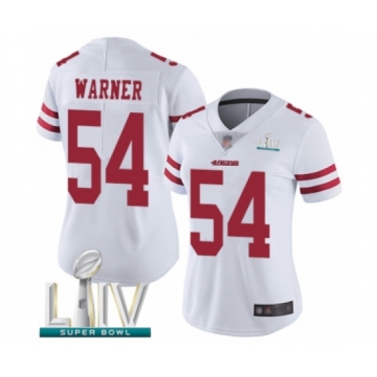 >Women's San Francisco 49ers #54 Fred Warner White Vapor Untouchable Limited Player Super Bowl LIV Bound Football Jersey