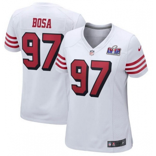Women's San Francisco 49ers #97 Nick Bosa White Throwback 2023 F U S E Vapor Untouchable Limited Stitched Football 2024 Super Bowl LVIII Jersey