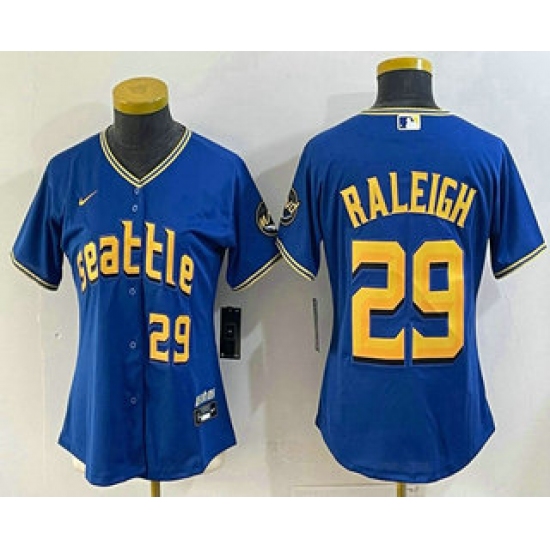 Women's Seattle Mariners #29 Cal Raleigh Number Blue 2024 City Connect Limited Stitched Jersey