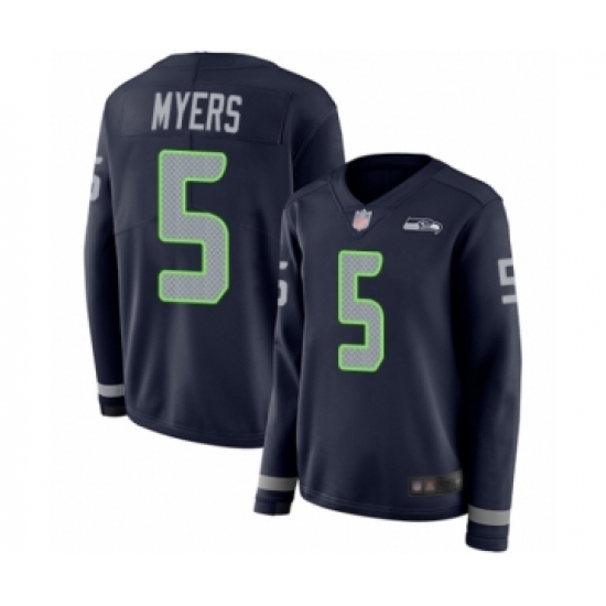 Women's Seattle Seahawks #5 Jason Myers Limited Navy Blue Therma Long Sleeve Football Jersey