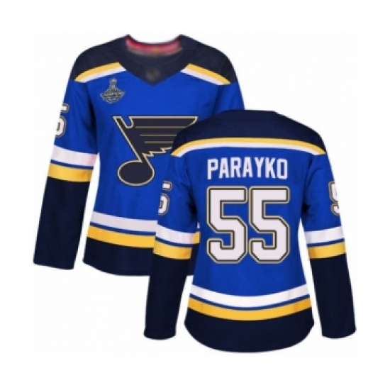 Women's St. Louis Blues #55 Colton Parayko Authentic Royal Blue Home 2019 Stanley Cup Champions Hockey Jersey
