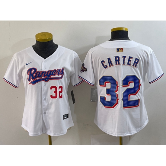 Women's Texas Rangers #32 Evan Carter Number White 2024 Gold Collection Limited Cool Base Jerseys