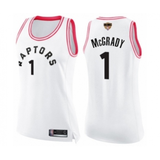 >Women's Toronto Raptors #1 Tracy Mcgrady Swingman White Pink Fashion 2019 Basketball Finals Bound Jersey