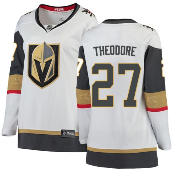 >Women's Vegas Golden Knights #27 Shea Theodore Authentic White Away Fanatics Branded Breakaway NHL Jersey