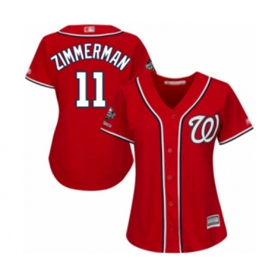 Women's Washington Nationals #11 Ryan Zimmerman Authentic Red Alternate 1 Cool Base 2019 World Series Champions Baseball Jersey