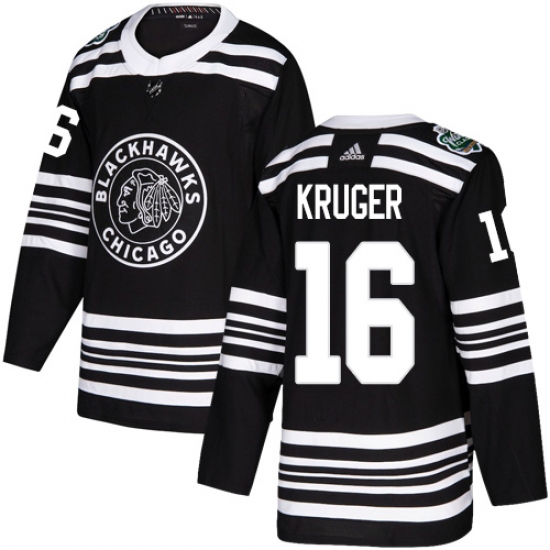>Youth Adidas Chicago Blackhawks #16 Marcus Kruger Authentic Black 2019 Winter Classic NHL Jersey