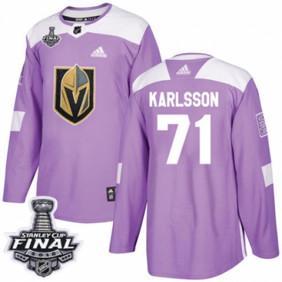 Youth Adidas Vegas Golden Knights #71 William Karlsson Authentic Purple Fights Cancer Practice 2018 Stanley Cup Final NHL Jersey