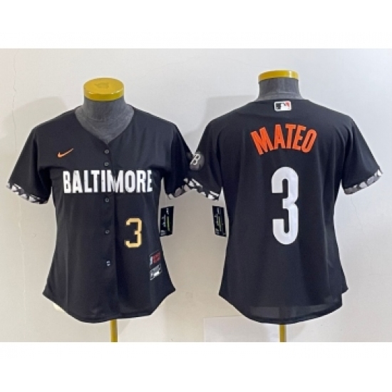 >Youth Baltimore Orioles #3 Jorge Mateo Number Black 2023 City Connect Cool Base Stitched Jersey 1