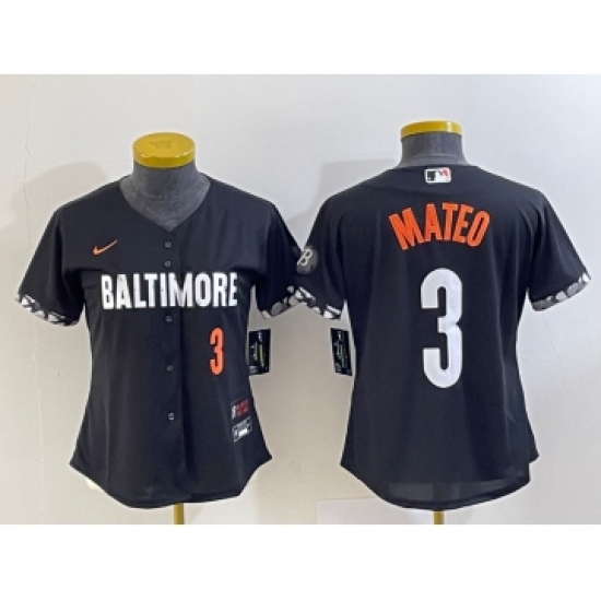 Youth Baltimore Orioles #3 Jorge Mateo Number Black 2023 City Connect Cool Base Stitched Jersey 2