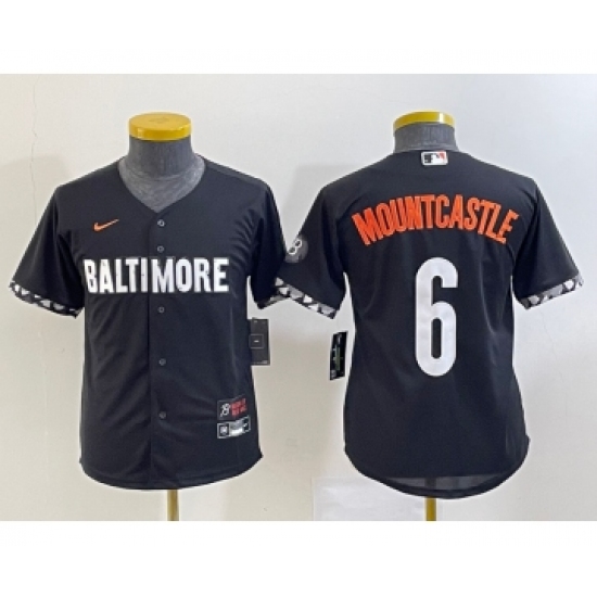 Youth Baltimore Orioles #6 Ryan Mountcastle Black 2023 City Connect Cool Base Stitched Jersey