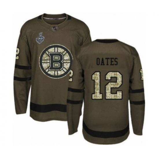 >Youth Boston Bruins #12 Adam Oates Authentic Green Salute to Service 2019 Stanley Cup Final Bound Hockey Jersey