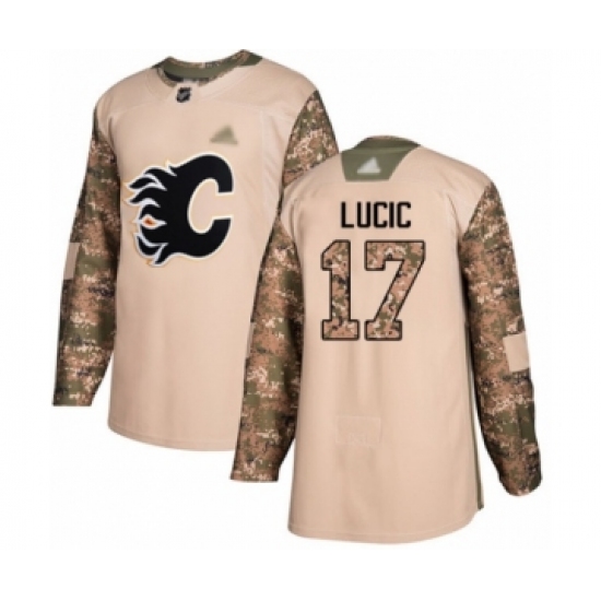 Men's Calgary Flames #17 Milan Lucic Authentic Camo Veterans Day Practice Hockey Jersey
