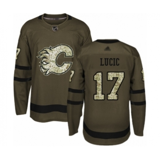Youth Calgary Flames #17 Milan Lucic Authentic Green Salute to Service Hockey Jersey