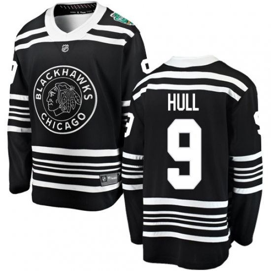 >Youth Chicago Blackhawks #9 Bobby Hull Black 2019 Winter Classic Fanatics Branded Breakaway NHL Jersey
